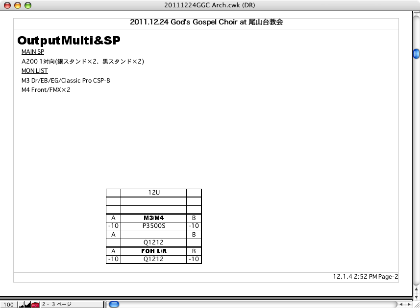 あとは、単純にインプットが多いから仕込みに時間がかかりました。そしてフリーライブだったためChoirさんたちの立ち位置が厳密に決まっていたわけでもなかったのでケーブル解釈が大変でした。